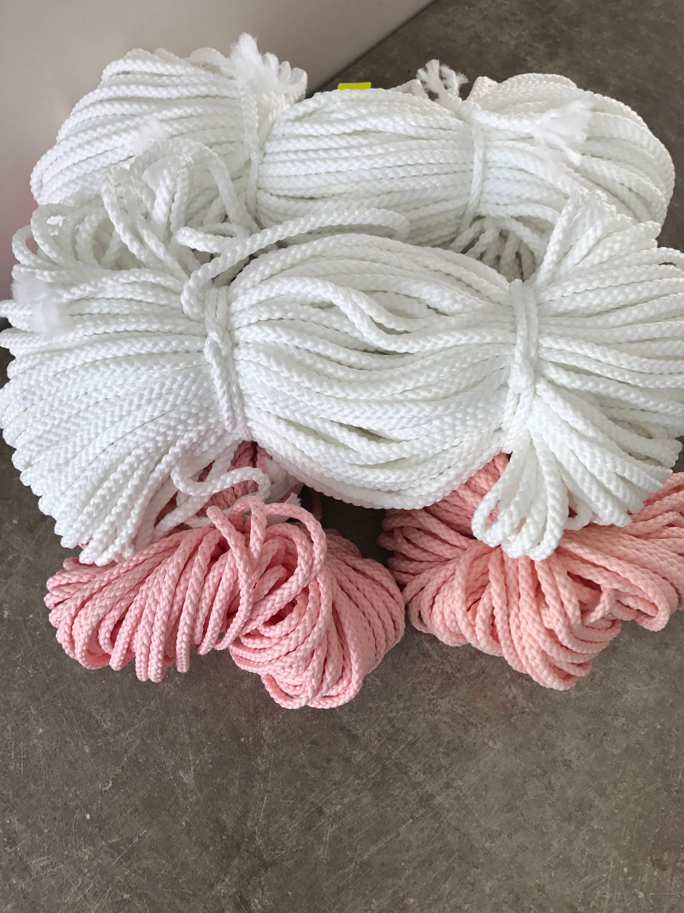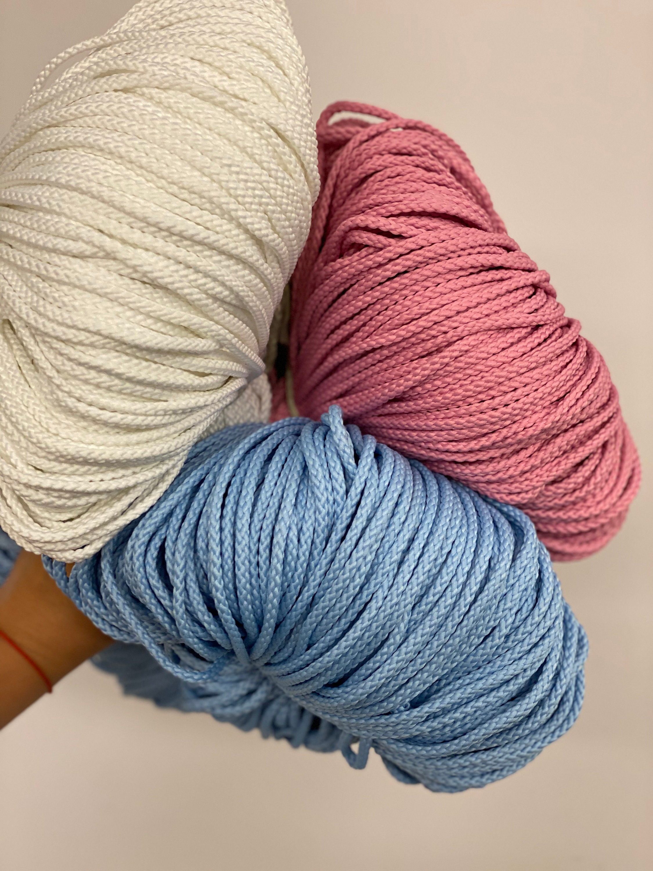 Rope cord is used for macramé projects - knitting, crocheting and weaving. With these craft supplies of crochet yarn and knitting yarn you can make a storage basket very easy and fast. Make accents of your home unique and fabulous. Surprise your friends by making something special from polyester rope cord.