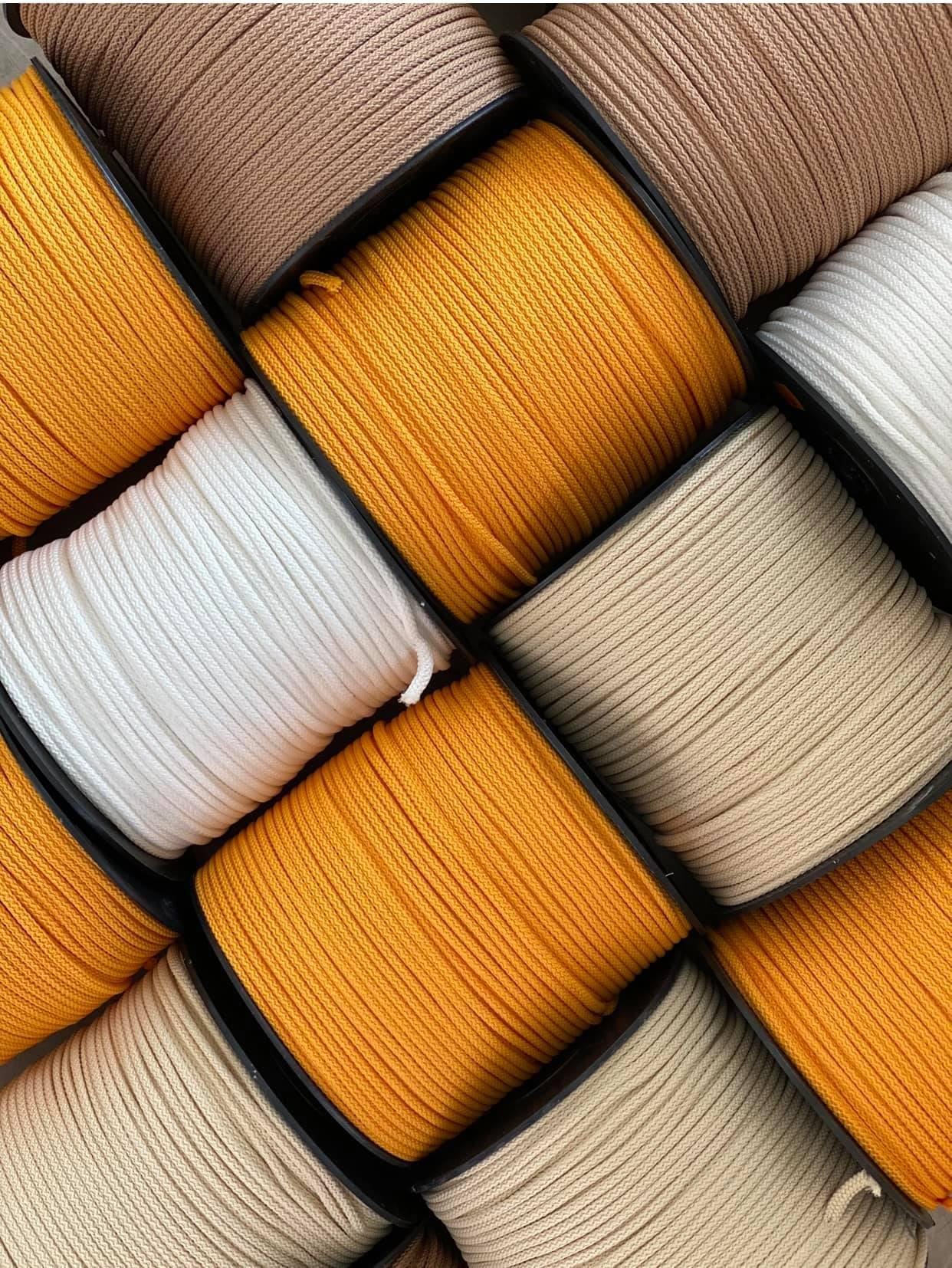 Macramé cord - polyester rope is used for knitting, crocheting and weaving. Make something beautiful and unique from rope cord for yourself and your home – bags, pillows, baskets, rugs, carpets, table mats, flower pots and other home décor accessories. Make a lasting accent with your own macramé project.