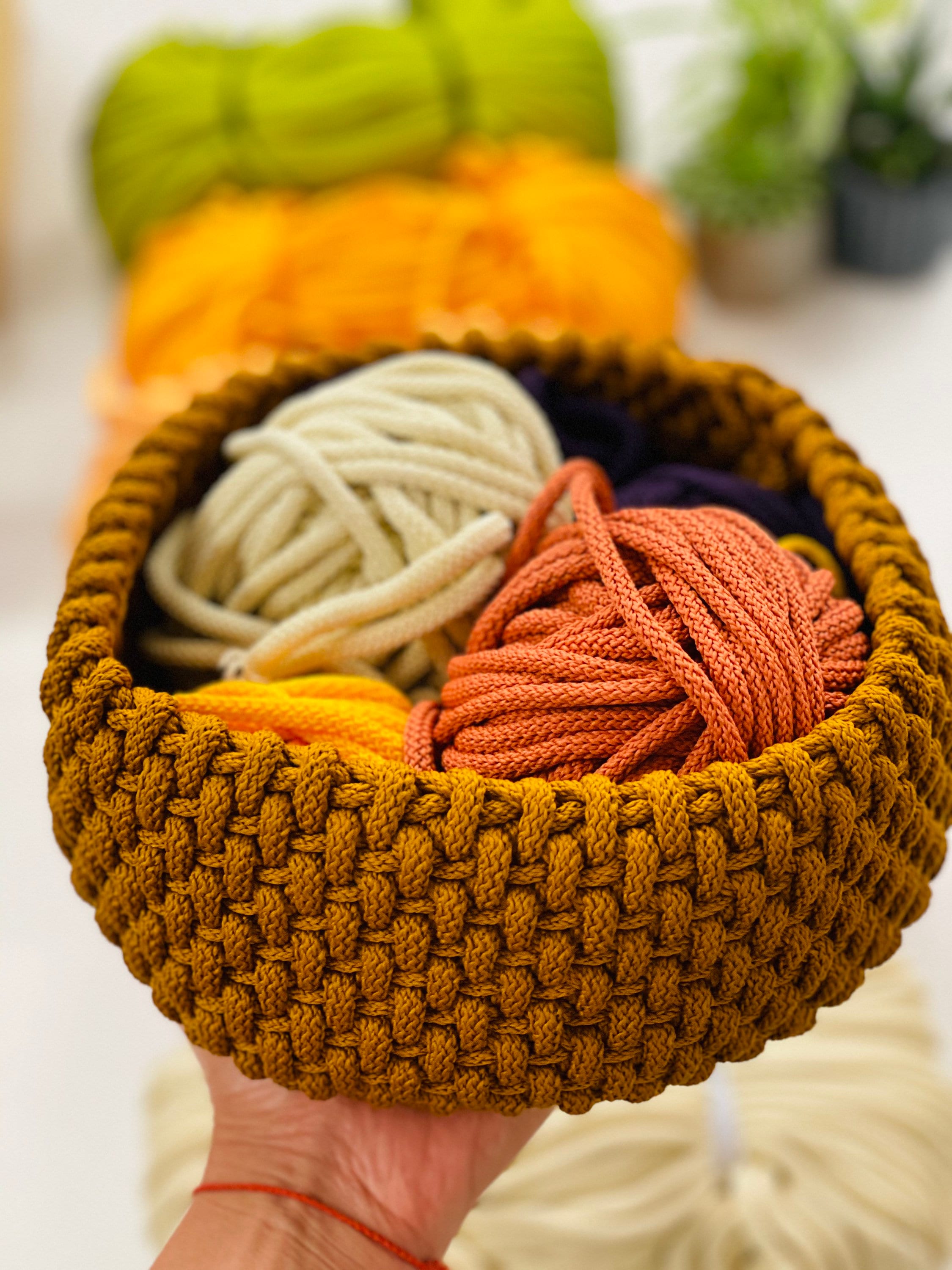 Rope cord is used for macramé projects - knitting, crocheting and weaving. With these craft supplies of crochet yarn and knitting yarn you can make a storage basket easy and fast. Make accents of your home unique and fabulous. Surprise your friends by making something special from polyester rope cord.